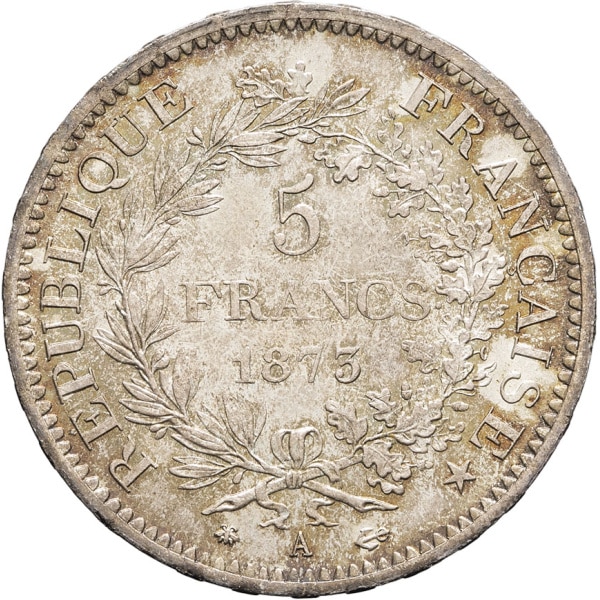 - IIIe République (1870-1940). 5 francs Hercule 1873, A, Paris.