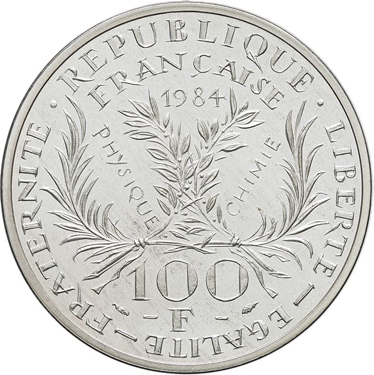 - Ve République (1958 à nos jours). Piéfort de 100 francs Marie Curie 1984, Pessac.