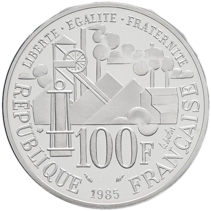 Ve République (1958 à nos jours). Piéfort de 100 francs Émile Zola 1985, Pessac.
