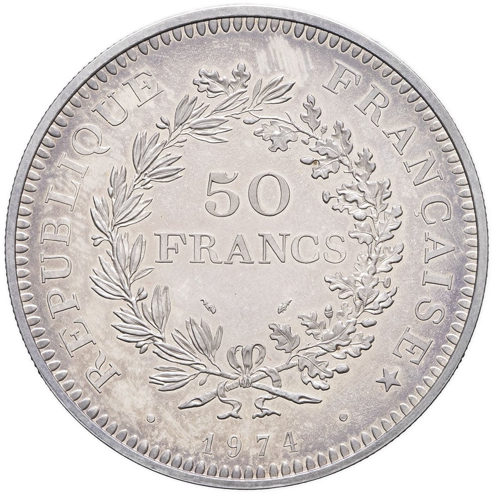 - Ve République (1958 à nos jours). Piéfort de 50 francs Hercule 1974, Pessac.