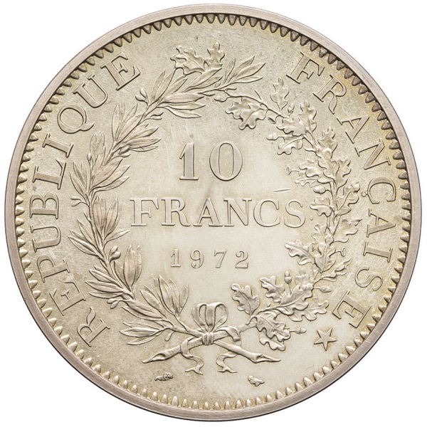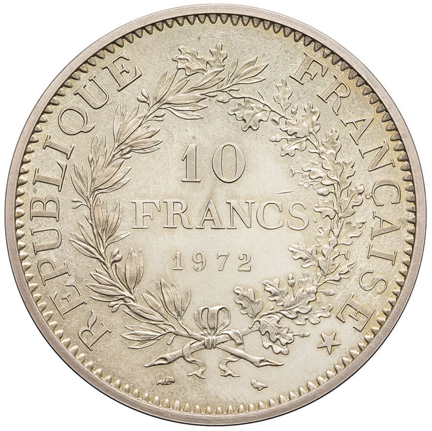 - Ve République (1958 à nos jours). Piéfort de 10 francs Hercule 1972, Paris.