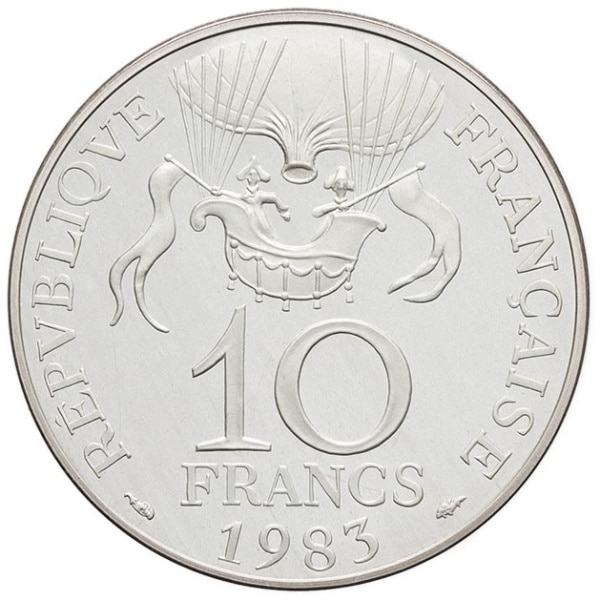 - Ve République (1958 à nos jours). Piéfort de 10 francs Conquête de l’espace en argent 1983, Pessac.