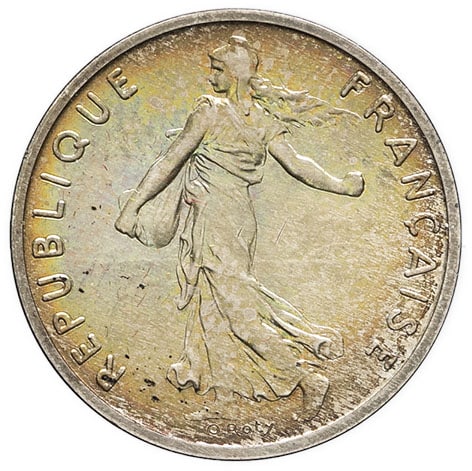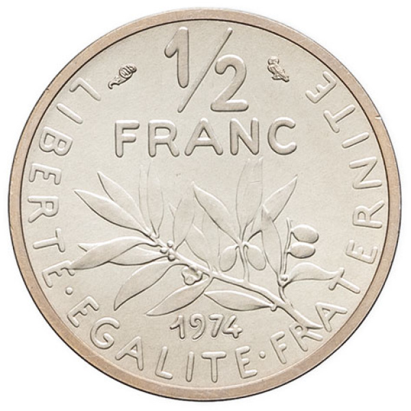 - Ve République (1958 à nos jours). Piéfort de 1/2 franc Semeuse en argent 1974, Pessac.