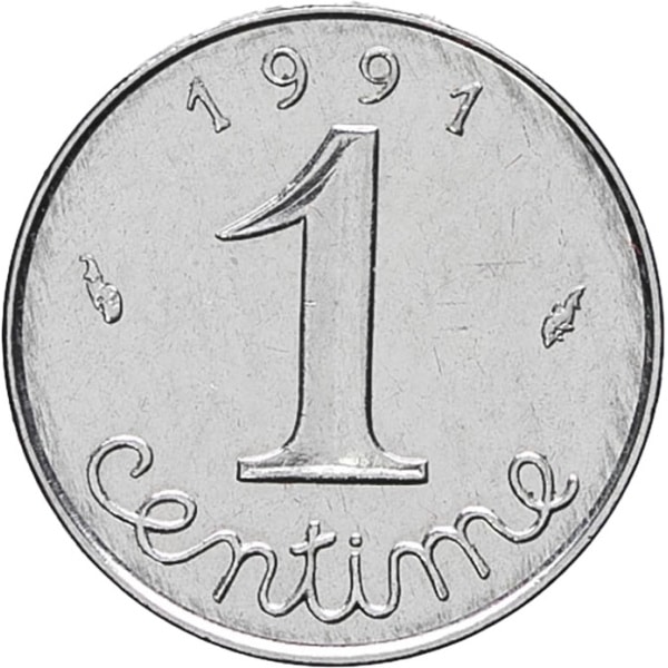 - Ve République (1958 à nos jours). 1 centime Épi, frappe monnaie 1991, Pessac.