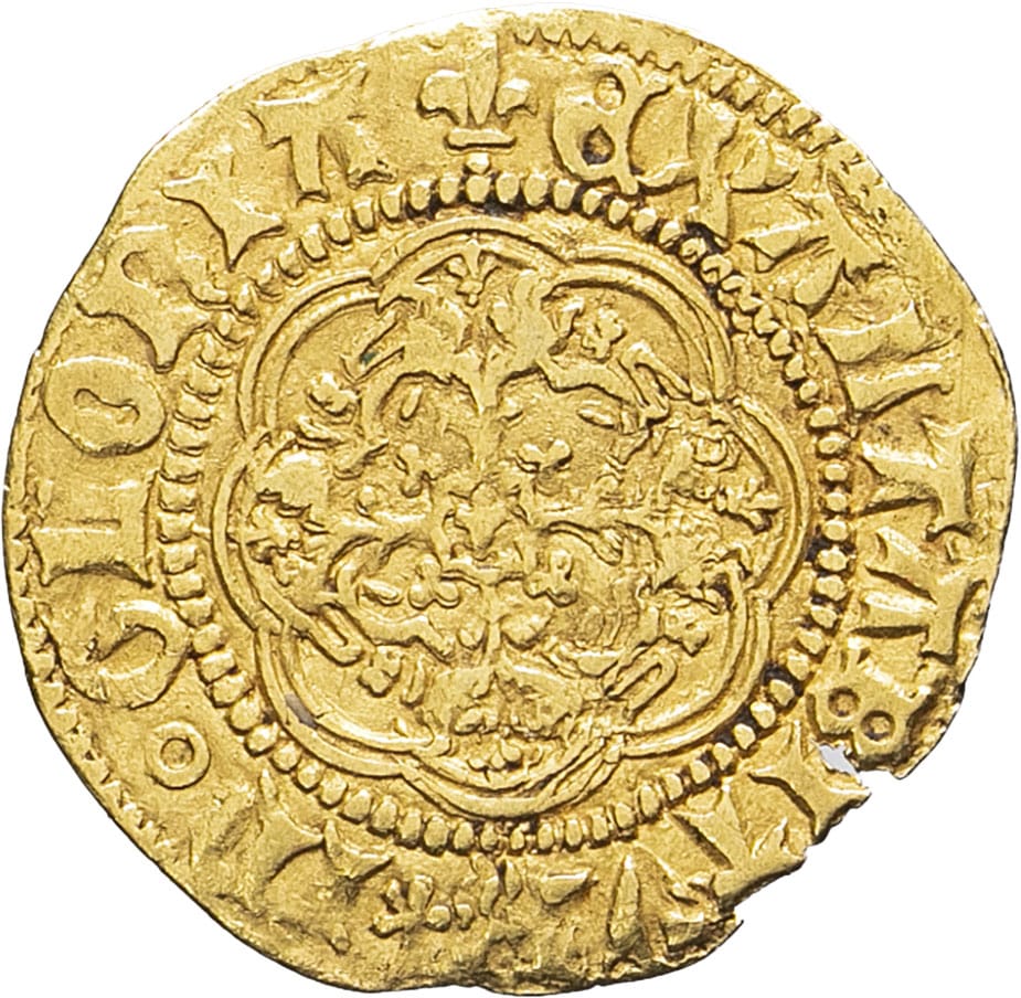 - UNITED KINGDOM Henri VI d’Angleterre (1422-1461). Quart de noble ND (1460), Londres.