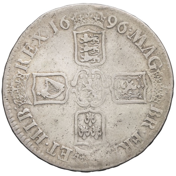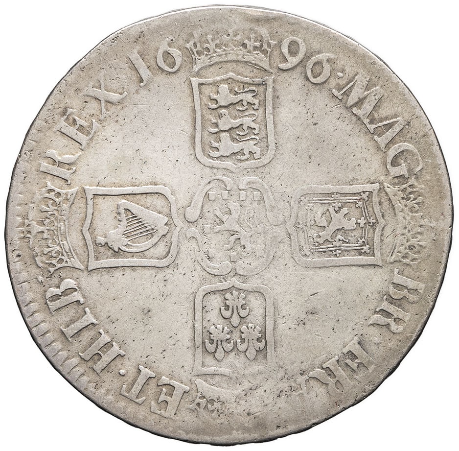 - UNITED KINGDOM Guillaume III (1694-1702). Couronne (crown), premier buste 1696 - OCTAVO, Londres.