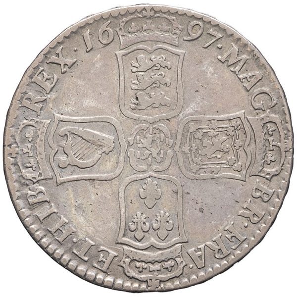 - UNITED KINGDOM Guillaume III (1694-1702). Demi couronne (halfcrown), premier buste 1697 - NONO, Londres.