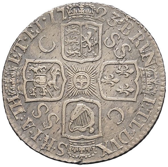 - UNITED KINGDOM Georges Ier (1714-1727). Shilling, argent de la Compagnie des mers du Sud 1723 SSC, Londres.