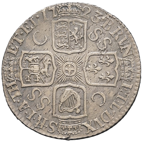 - UNITED KINGDOM Georges Ier (1714-1727). Shilling, argent de la Compagnie des mers du Sud 1723 SSC, Londres.