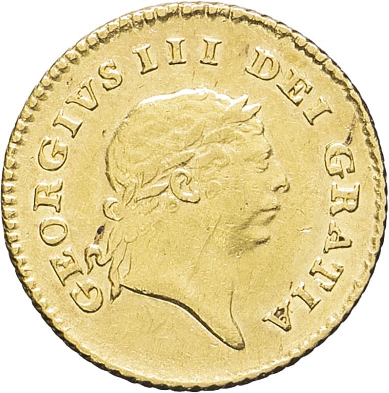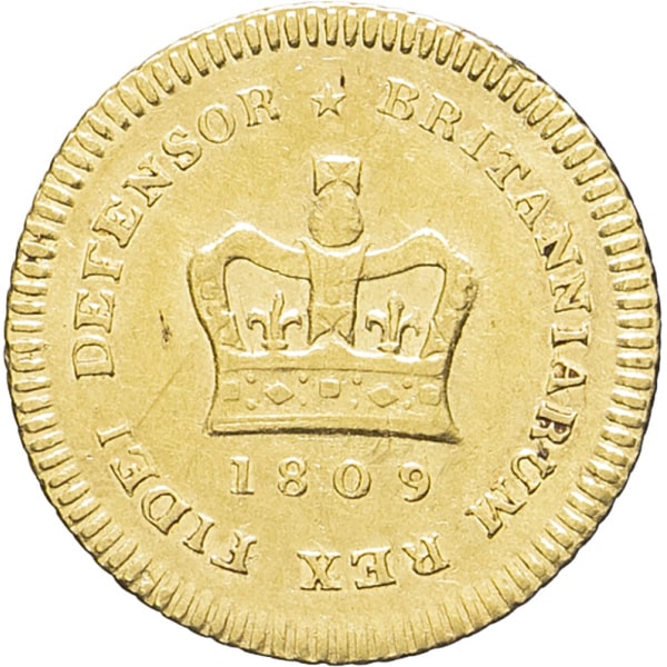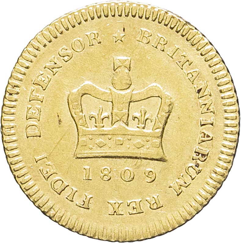 - UNITED KINGDOM Georges III (1760-1820). Tiers de guinée, 2e tête 1809, Londres.