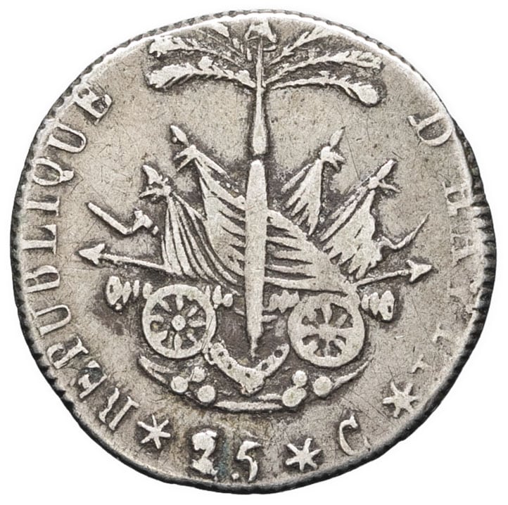 - HAITI Première république d’Haïti (1806-1820). 25 centimes An 14 (1817).