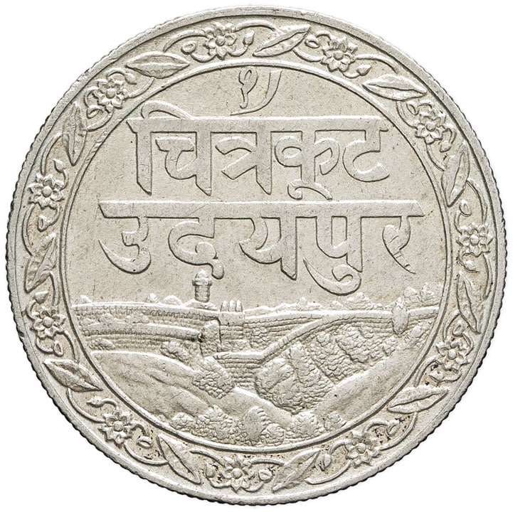 - INDIA Mewar (état de), Fateh Singh (1885-1930). Roupie VS 1985 (1928), Calcutta.