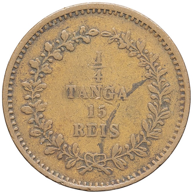 - PORTUGUESE INDIES Louis Ier (1861-1889). 1/4 tanga ou 15 réis 1871, Bombay.