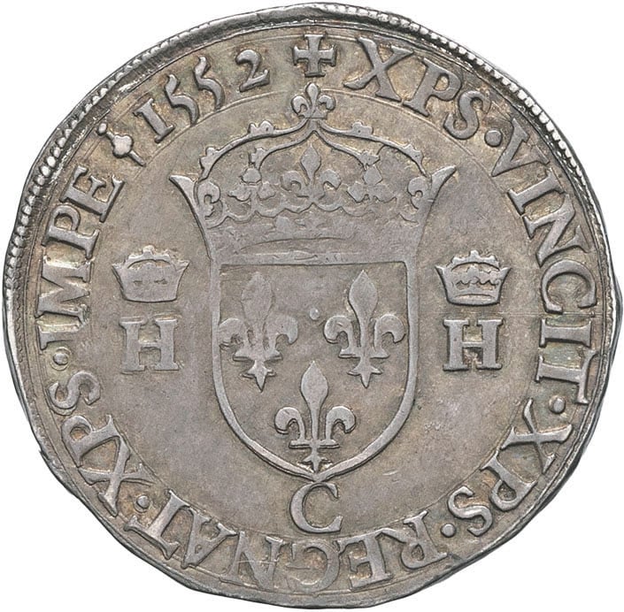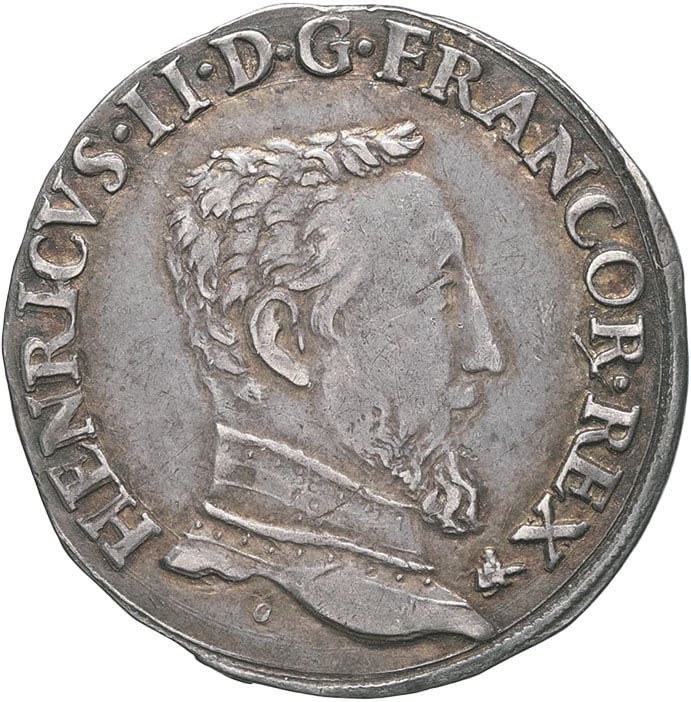 - FRANCE / ROYAL Henri II (1547-1559). Teston à la tête nue, 1er type 1552, C, Saint-Lô.