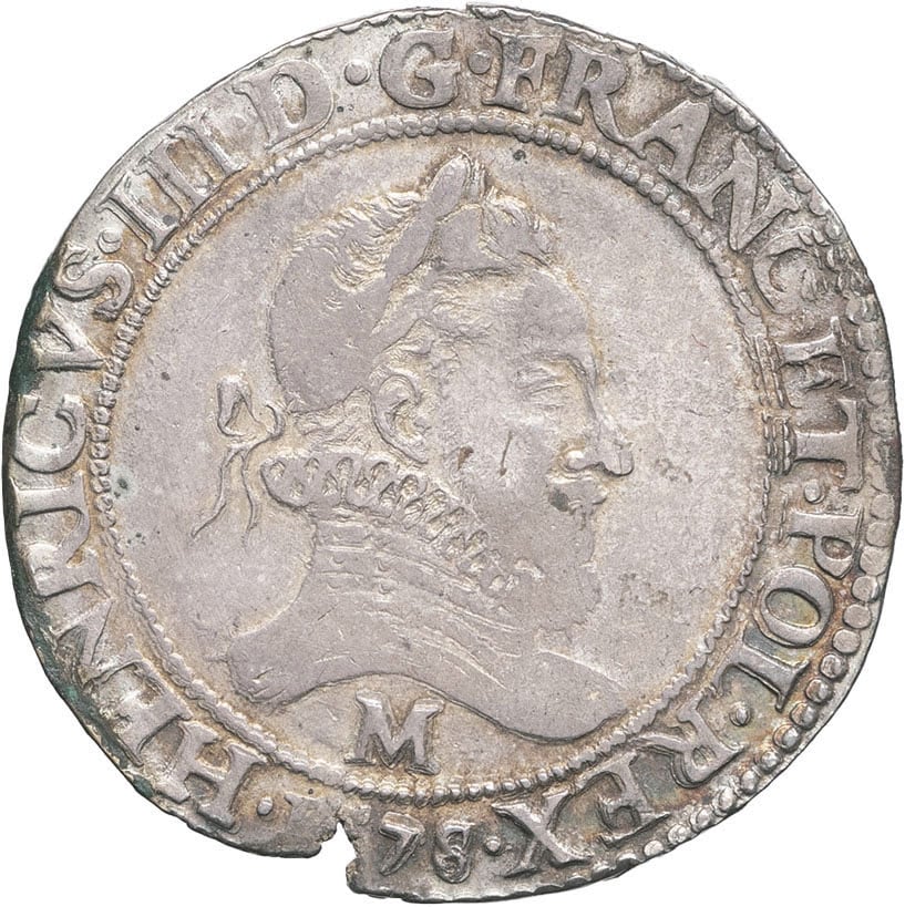 - FRANCE / ROYAL Henri III (1574-1589). Franc au col fraisé 1578, M, Toulouse.