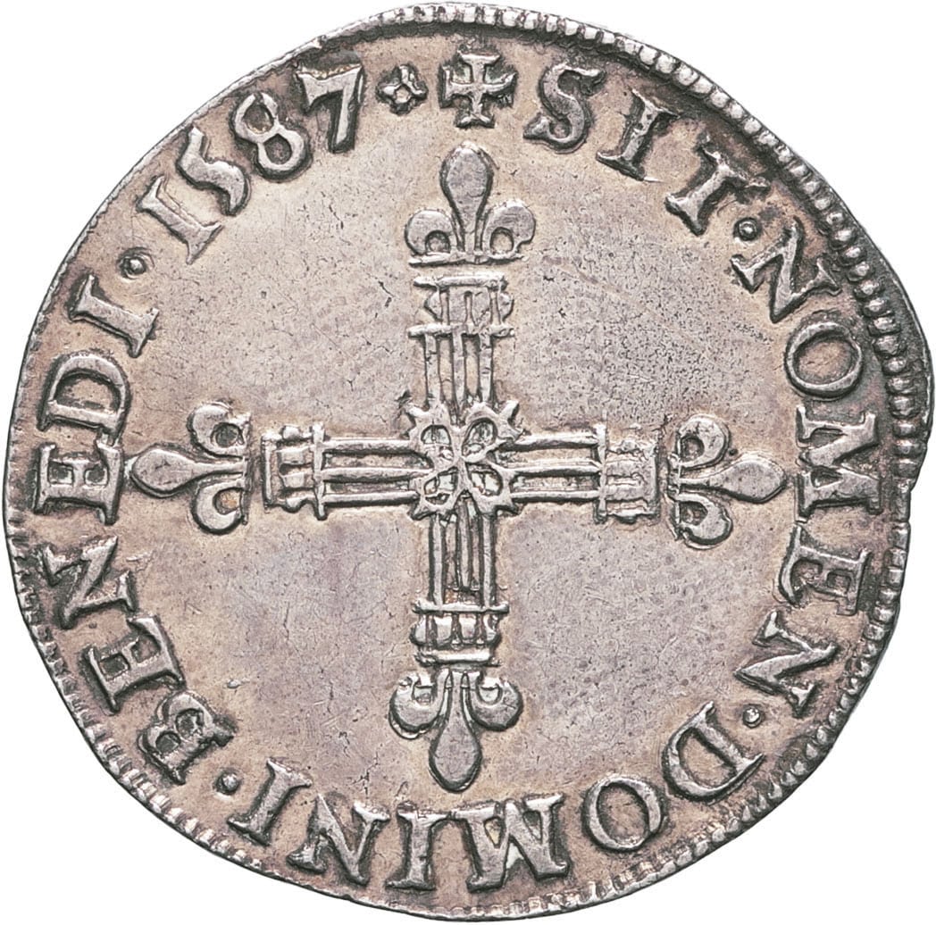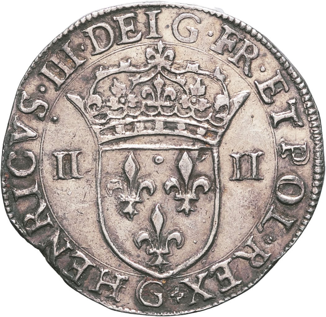 - FRANCE / ROYAL Henri III (1574-1589). Quart d’écu 1587, G, Poitiers.
