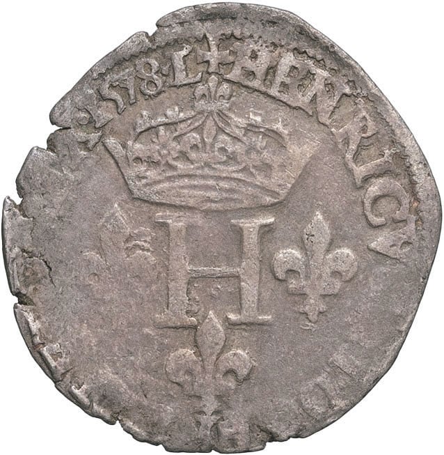 - FRANCE / ROYAL Henri III (1574-1589). Double sol parisis, 2e type 1578, Riom.