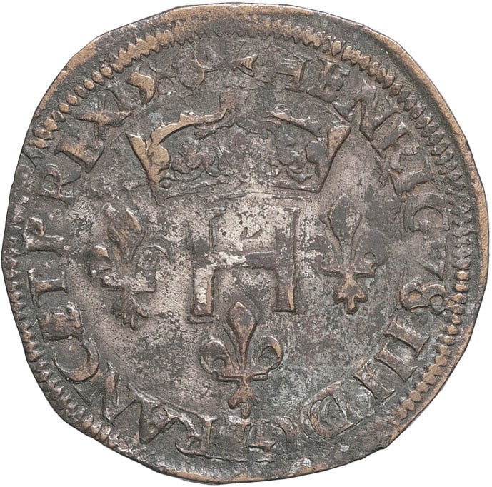 - FRANCE / ROYAL Henri III (1574-1589). Double sol parisis, 2e type, faux d’époque 1586, &, Aix-en-Provence.