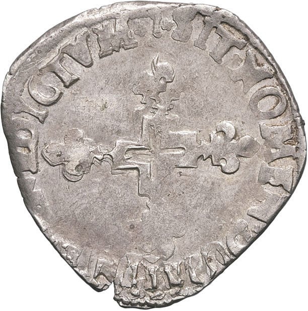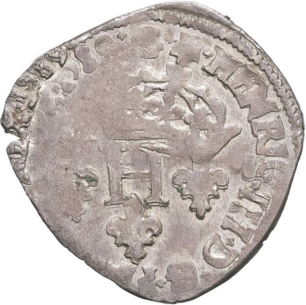 - FRANCE / ROYAL Henri III (1574-1589). Double sol parisis, 2e type 1589, N, Montpellier.