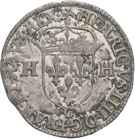 - FRANCE / ROYAL Henri IV (1589-1610). Douzain aux 2 H, 2e type 1591, C, Saint-Lô.