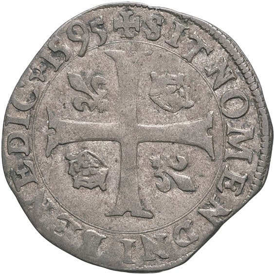 - FRANCE / ROYAL Henri IV (1589-1610). Douzain aux 2 H, 2e type 1595, G, Poitiers.