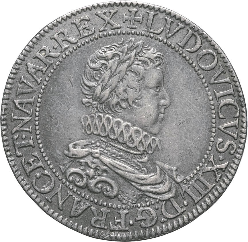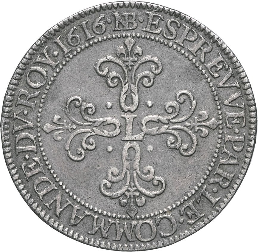 - FRANCE / ROYAL Louis XIII (1610-1643). Essai du franc au buste adolescent et à la grande collerette, par Nicolas Briot commandeur du roi 1616 (moulage postérieur), Paris.