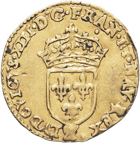 Rv. + XPS. REGNAT. VINCIT. ET. IMPERAT. (date). Croix anillée fleurdelisée avec (atelier) en cœur.