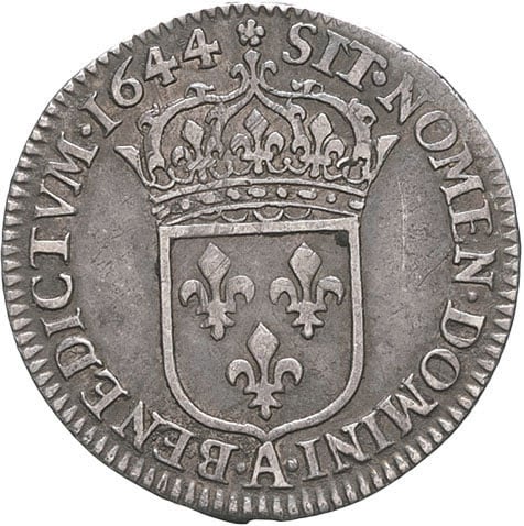 - FRANCE / ROYAL Louis XIV (1643-1715). Douzième d’écu à la mèche courte 1644, A, Paris (rose).