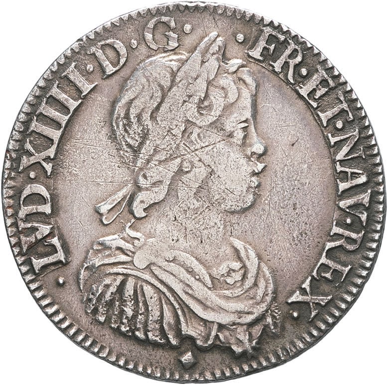 Millésime repoinçonné en 1652 sur 1644. Rayures et nettoyage à l’avers. TB.