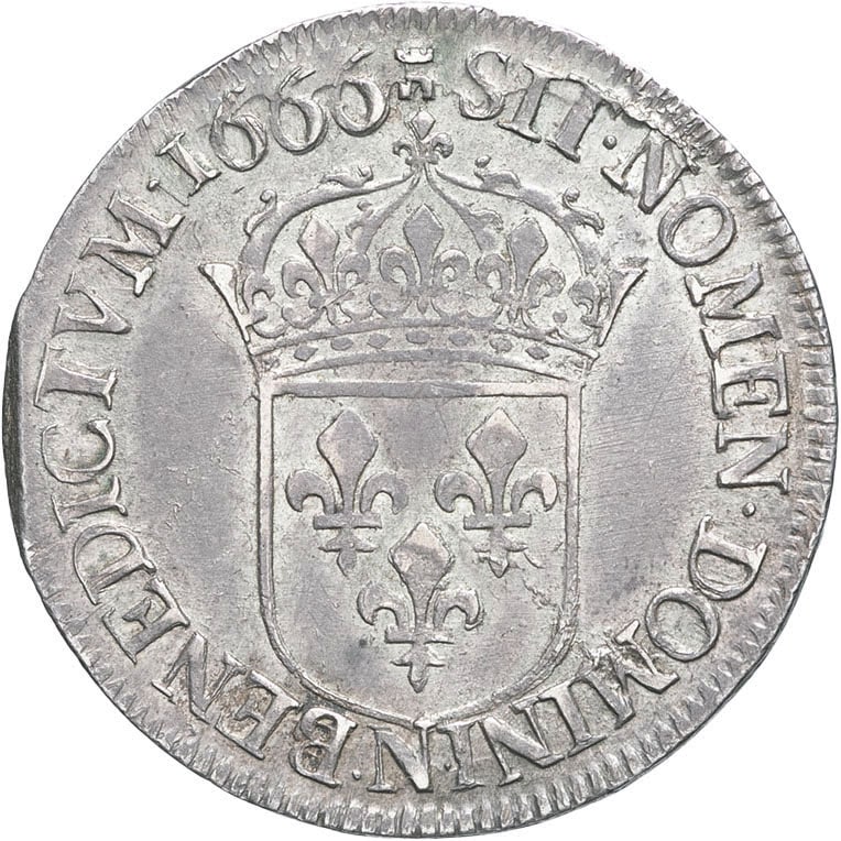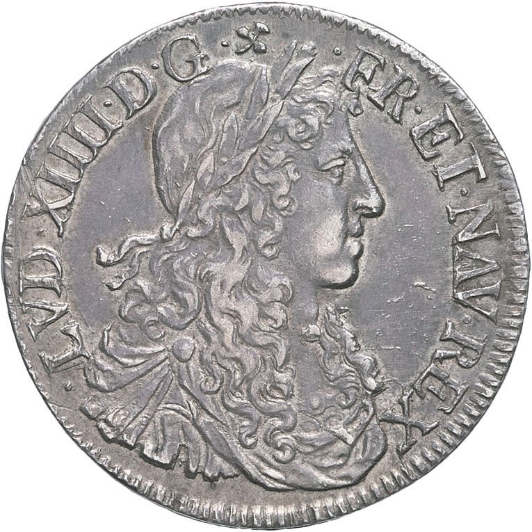 - FRANCE / ROYAL Louis XIV (1643-1715). Demi-écu au buste juvénile, 1er poinçon d’effigie 1666, N, Montpellier.