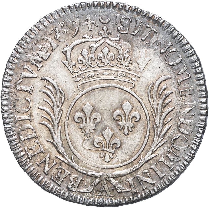 - FRANCE / ROYAL Louis XIV (1643-1715). Demi-écu aux palmes 1694, A, Paris.