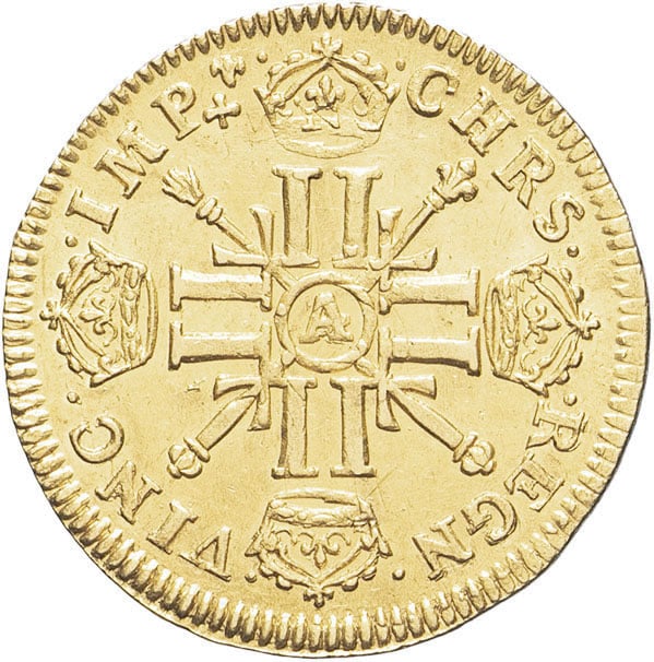 - FRANCE / ROYAL Louis XIV (1643-1715). Louis d’or aux huit L et aux insignes 1702, A, Paris.