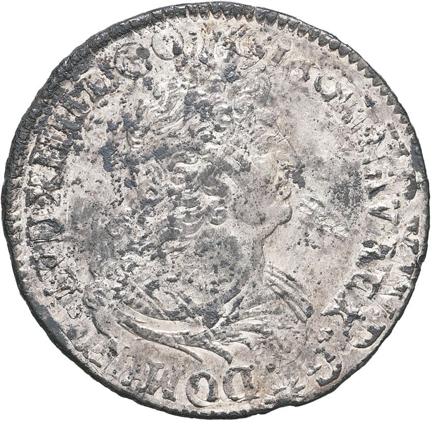 Réformation sur un demi-écu aux palmes. Exemplaire ayant conservé du brillant d’origine, partiellement recouvert d’une couche d’oxydation gris/violet. TTB à Superbe.