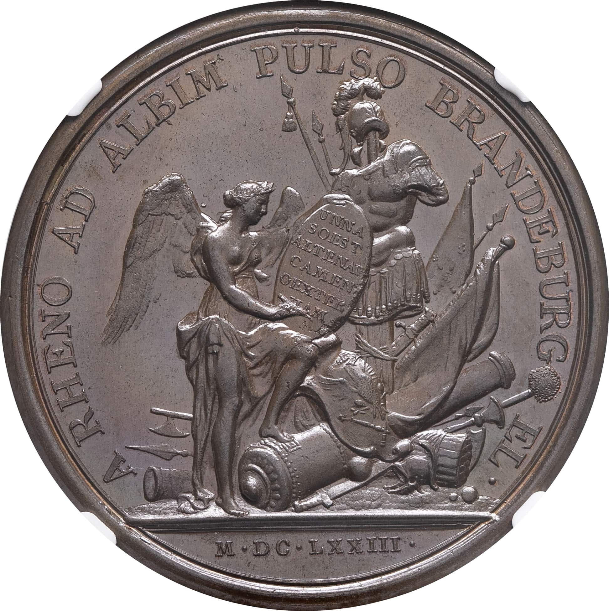 - FRANCE / ROYAL Louis XIV (1643-1715). Médaille, L’Électeur de Brandebourg poussé jusqu’à l’Elbe, par J. Mauger 1673, Paris.
