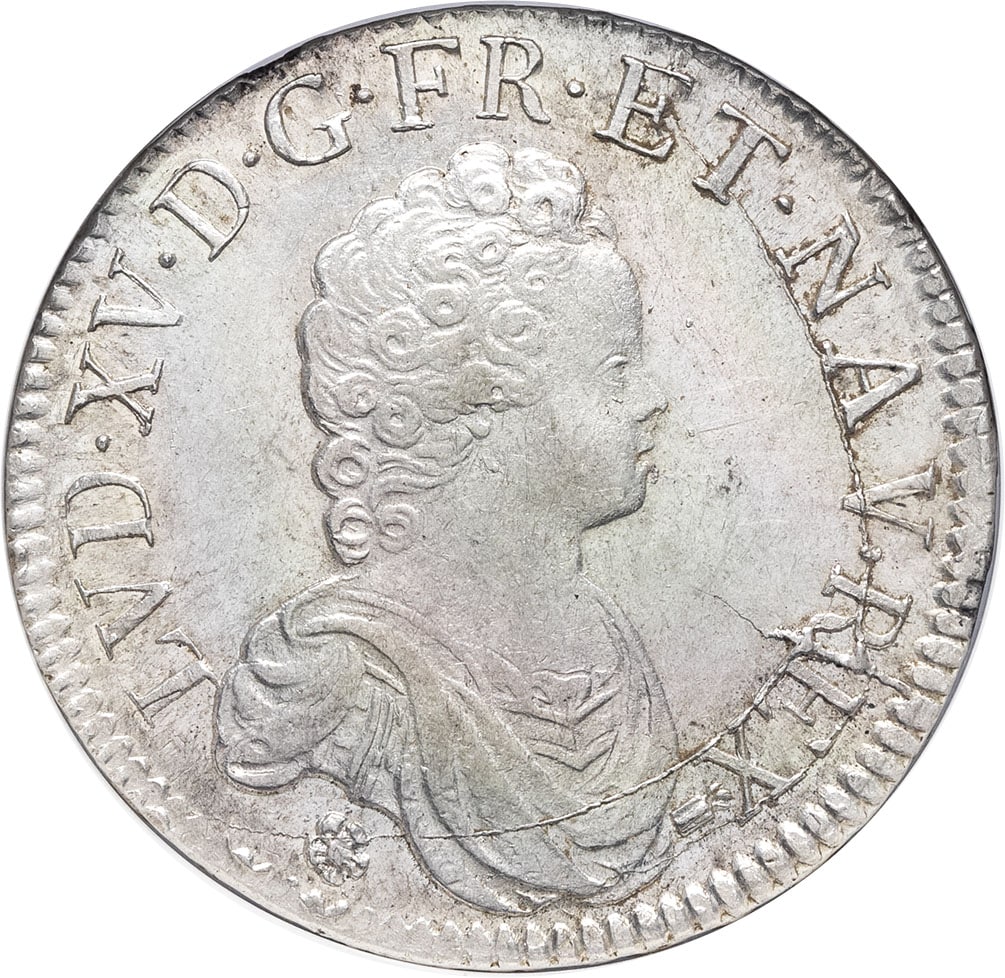 - FRANCE / ROYAL Louis XV (1715-1774). Écu dit Vertugadin 1716, CC, Besançon.