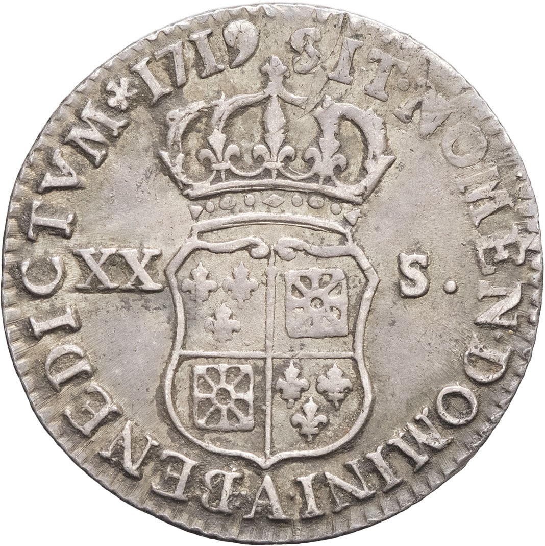 - FRANCE / ROYAL Louis XV (1715-1774). Sixième d’écu ou XX sols de France-Navarre 1719, A, Paris.