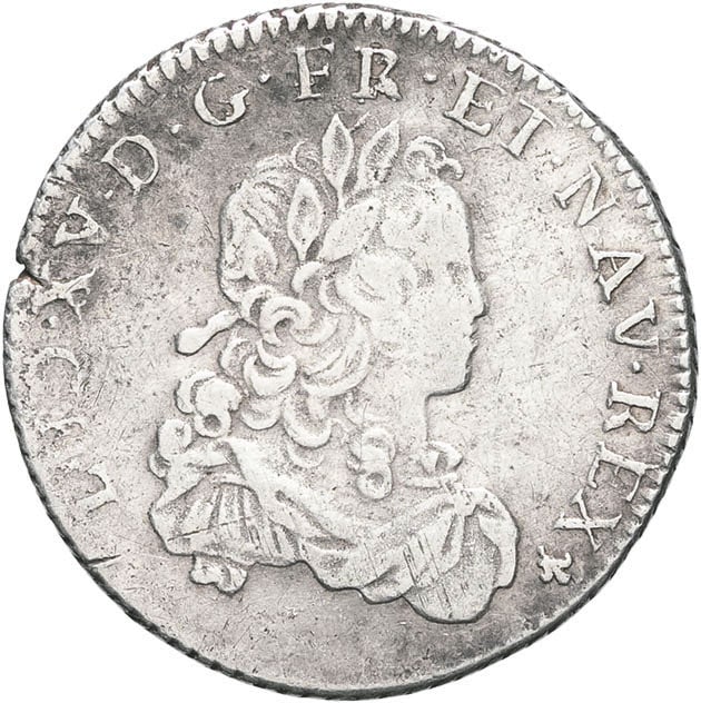 Av. LUD. XV. D. G. FR. ET NAV. REX (différent). Buste du Roi à droite, lauré, drapé et cuirassé ; au-dessous (réformation).