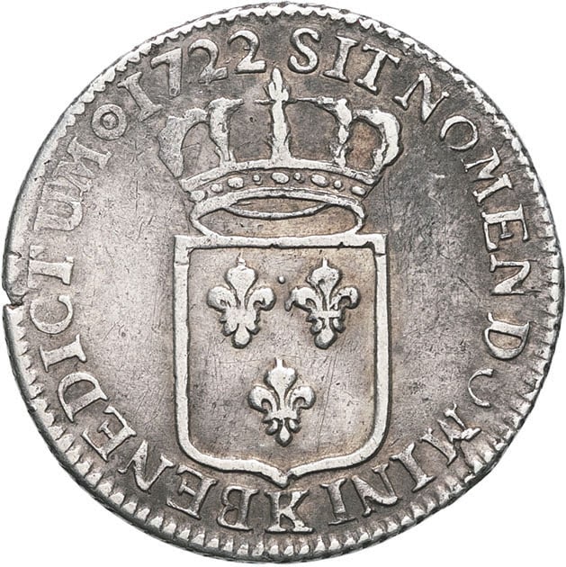 - FRANCE / ROYAL Louis XV (1715-1774). Tiers d’écu de France 1722, K, Bordeaux.