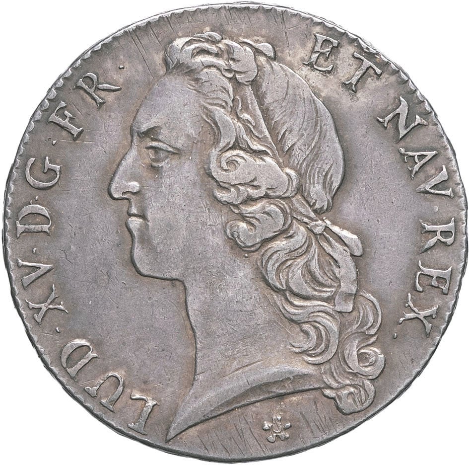 Av. LUD. XV. D. G. FR. ET NAV. REX. Tête à gauche du Roi, ceinte d’un bandeau. Signature JCR sur la tranche du cou ; au-dessous (différent).