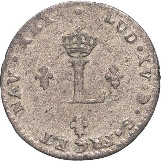 Av. .LUD. XV. D. G. FR. (différent) ET. NAV. REX. Dans le champ, L couronnée entre trois lis posés 2 et 1.
