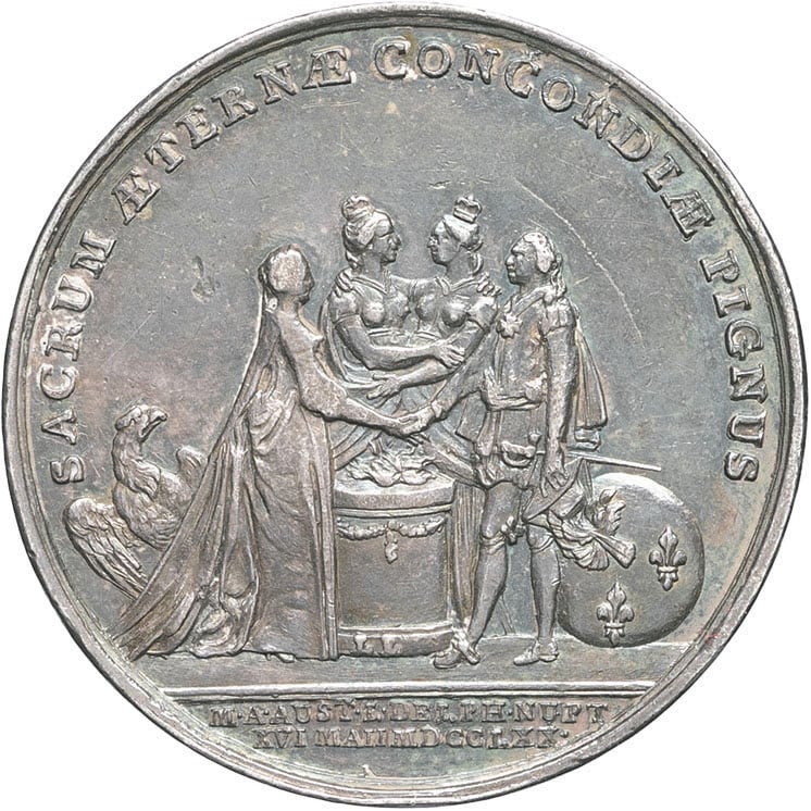 - FRANCE / ROYAL Louis XV (1715-1774). Médaille, mariage du dauphin Louis (XVI) et de Marie-Antoinette 1770.