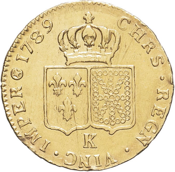 - FRANCE / ROYAL Louis XVI (1774-1792). Double louis d’or à la tête nue 1789, 1er semestre, K, Bordeaux.