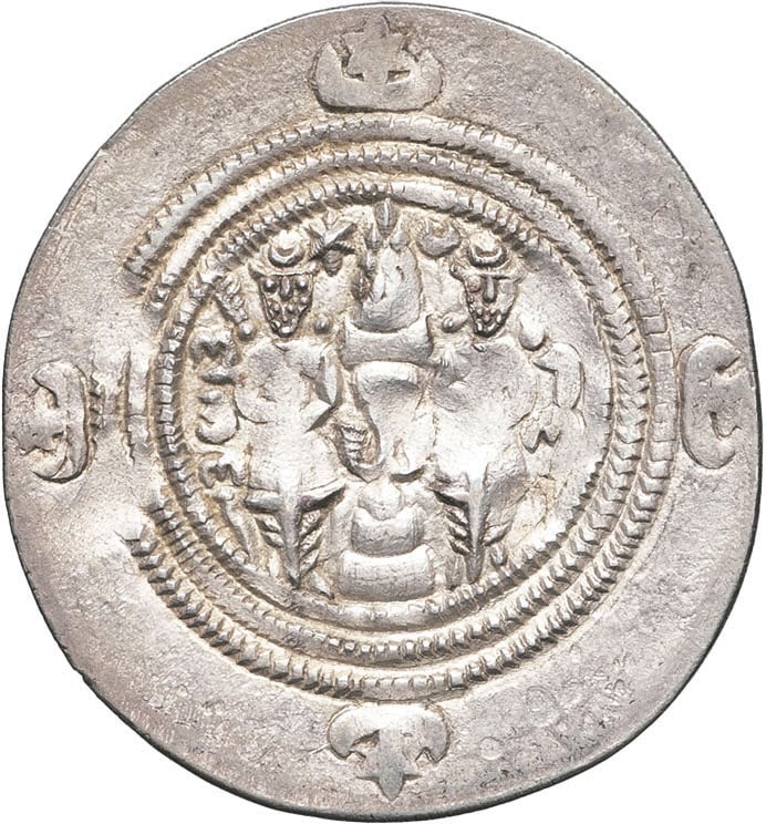 - GREEK Empire sassanide, Khosro II (591-628). Drachme RY 12 (602), Gayy.