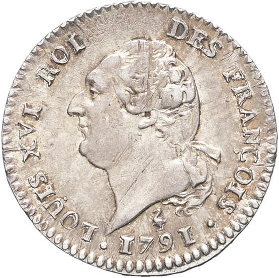Av. LOUIS XVI ROI DES FRANÇOIS. Tête à gauche du Roi, les cheveux noués par un ruban sur la nuque. Au-dessous (différent) (date).