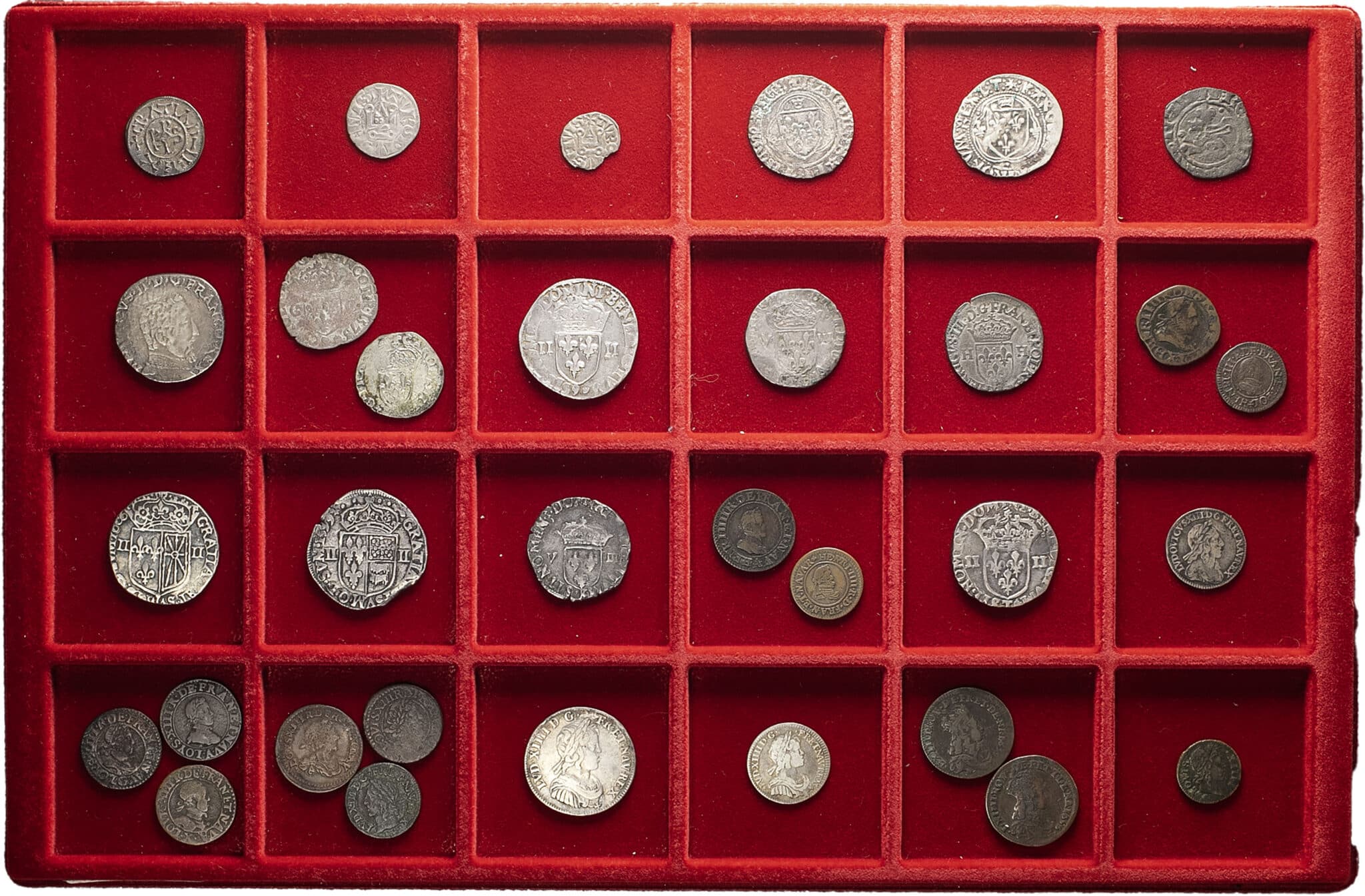 Dont plusieurs monnaies en argent, des doubles tournois, et autres monnaies intéressantes. B à TTB.