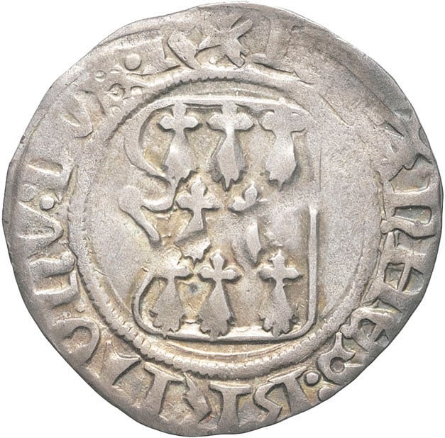 - FRANCE / FEUDAL Bretagne, Jean V (1399-1442). Blanc à la targe ND, R, Rennes.