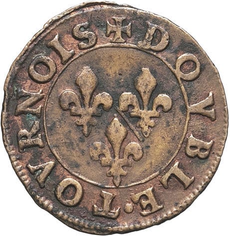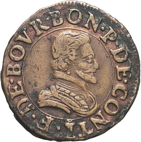- FRANCE / FEUDAL Château-Regnault, François de Bourbon (1605-1614). Double tournois au col plat, type 18 ND, Château-Regnault.