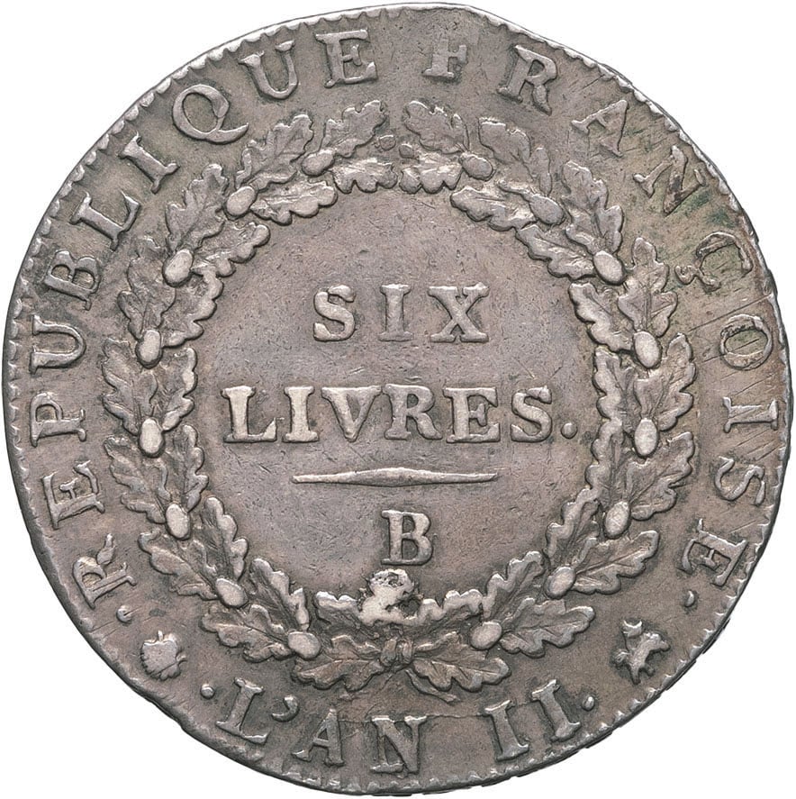 - Convention (1792-1795). Écu de 6 livres FRANÇOISE 1793 - An II, B, Rouen.