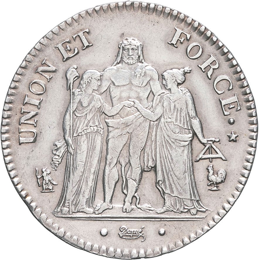 - Directoire (1795-1799). 5 francs Union et Force An 7 (1798), A, Paris.