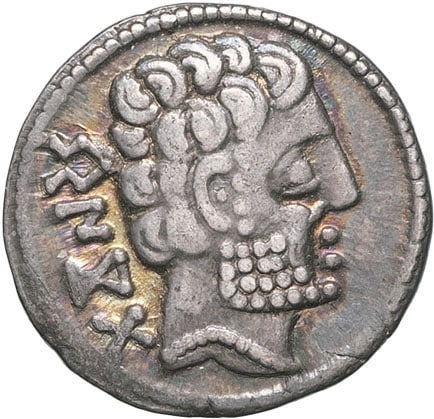 Av. [BeNoKTa]. Tête barbue à droite, légende en ibère derrière.